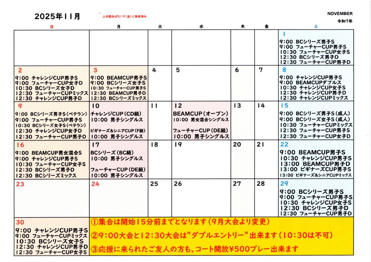 ※9月大会より集合時間を”開始15分前まで”に変更しております