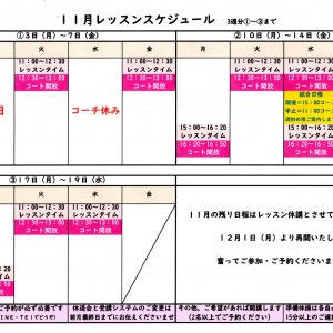 11月レッスンスケジュール・テニススタッフお休み日程ご案内